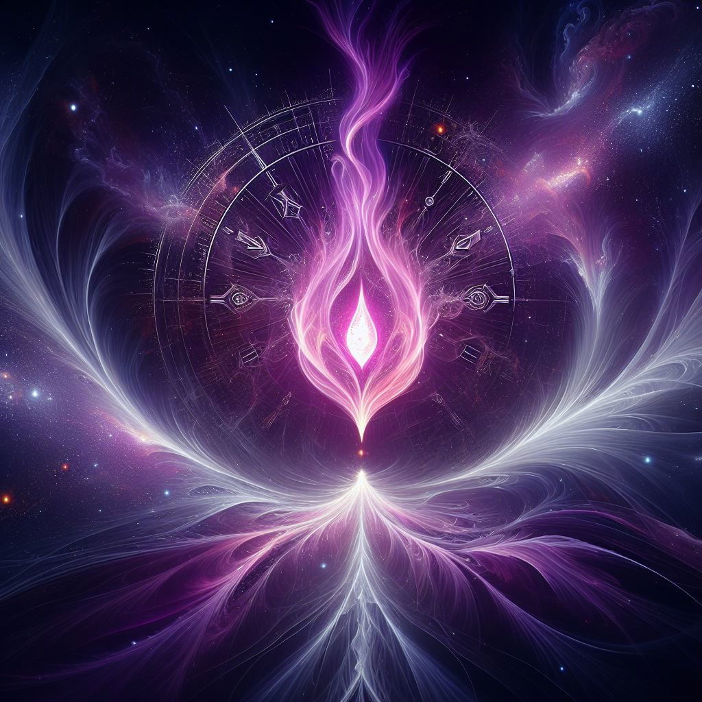 3. Channeling – Saint Germain en de Violette Vlam Voel hoe de Violette Vlam van transformatie zich om je heen ontvouwt. Saint Germain spreekt: “Geliefde ziel, de ware energie leeft in jou. Zij is niet buiten je te vinden, maar in je eigen hart. Laat de Violette Vlam alles wat illusie is transformeren, zodat enkel de zuivere waarde van jouw wezen overblijft. Jij bent de drager van licht, jij bent de erkenning van spiritualiteit in levende vorm.” Laat deze woorden als een stroom door je heen gaan. Voel hoe de Violette Vlam oude overtuigingen oplost en ruimte maakt voor helderheid en kracht.